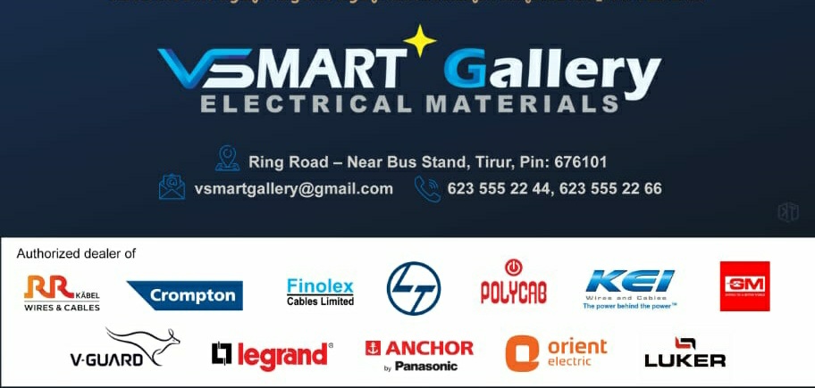 V SMART GALLERY | TIRUR | ELECTRICAL & PLUMBING | ഇലക്ട്രിക് രംഗത്തെ മികച്ച കമ്പനികളുടെ ഉൽപന്നങ്ങൾ നിങ്ങളുടെ കൈകളിൽ ഹോൾസെയിൽ & റീട്ടെയിൽ ആയി എത്തിക്കുന്നു,